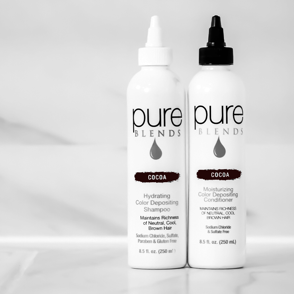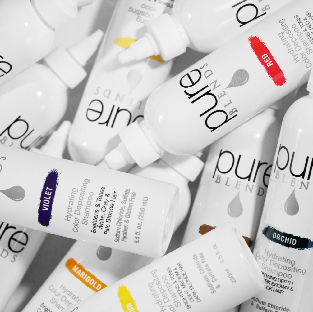 Pure Blends is a hydrating fade prevention & color correction system, consisting of moisture rich, high pigment, color depositing shampoos, conditioners color support products. Created with pure hair color powders & a unique herbal blend of coconut oil, violet, eggplant, marigold, keratin & collagen, Pure Blends is a dual purpose colorists tool with both retail & in-salon usages.