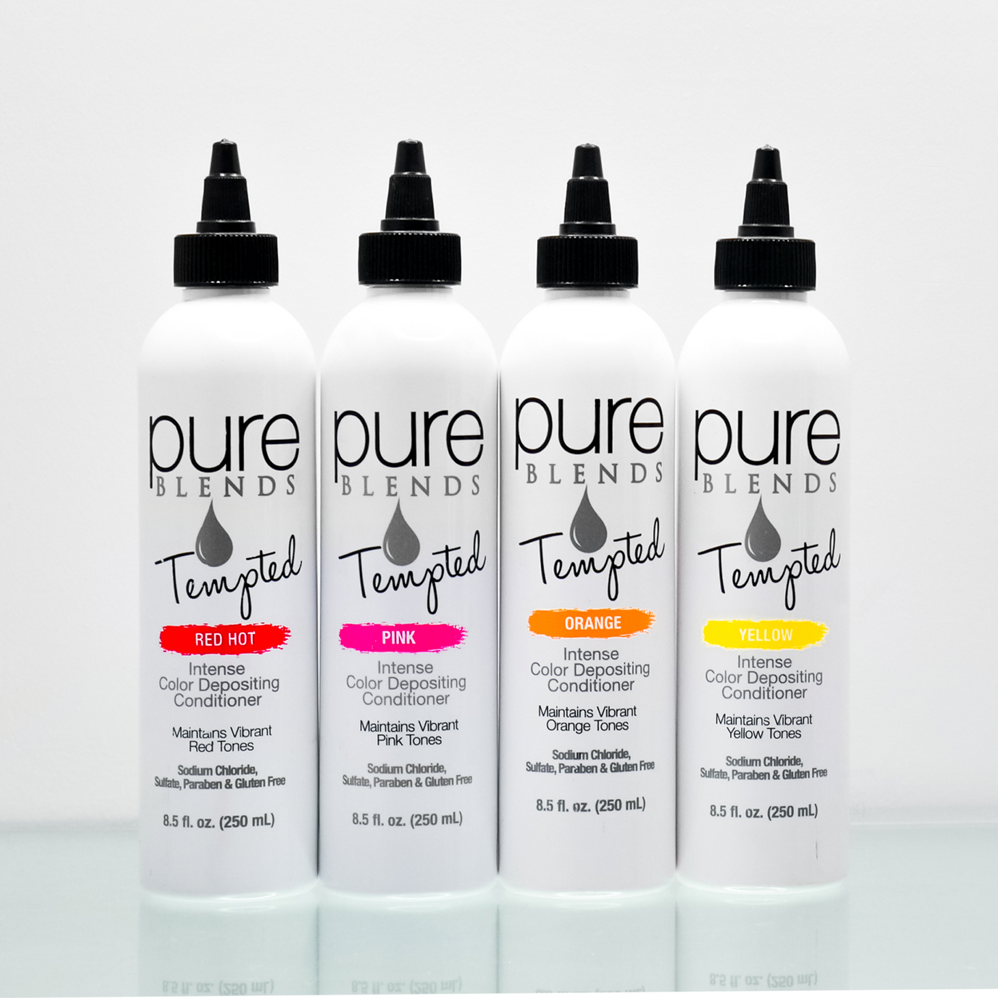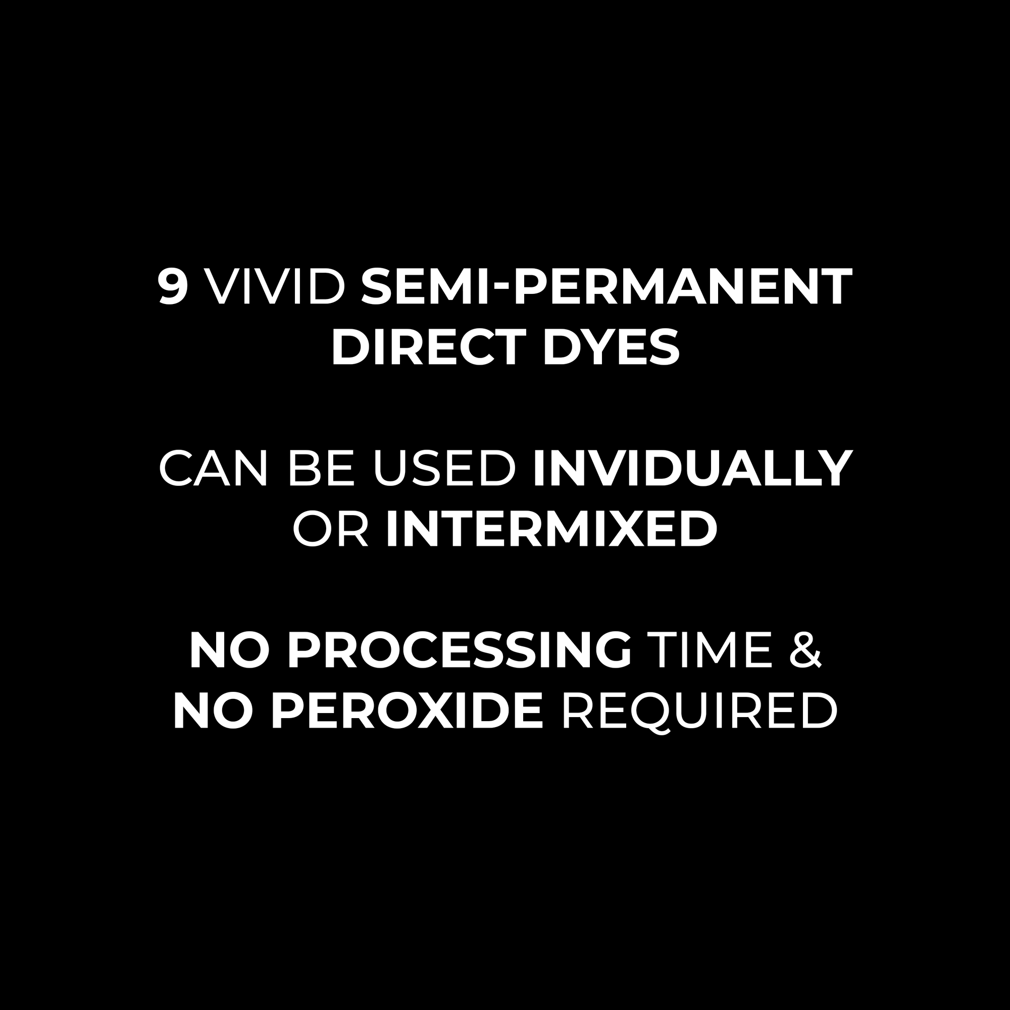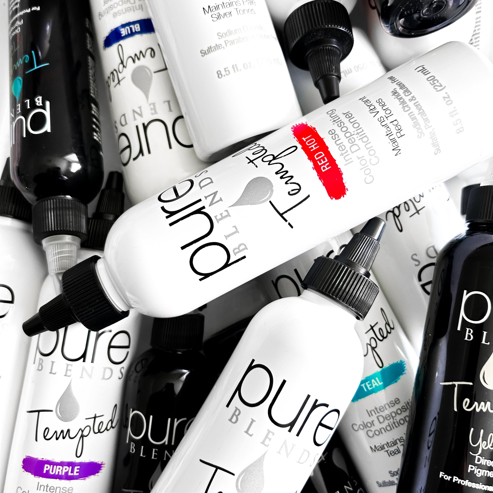 Our Tempted Collection features 9 Vivid & Vibrant Semi-Permanent Direct Dyes & 9 matching Color Depositing Conditioners to maintain your vivid shade & prevent color fade!